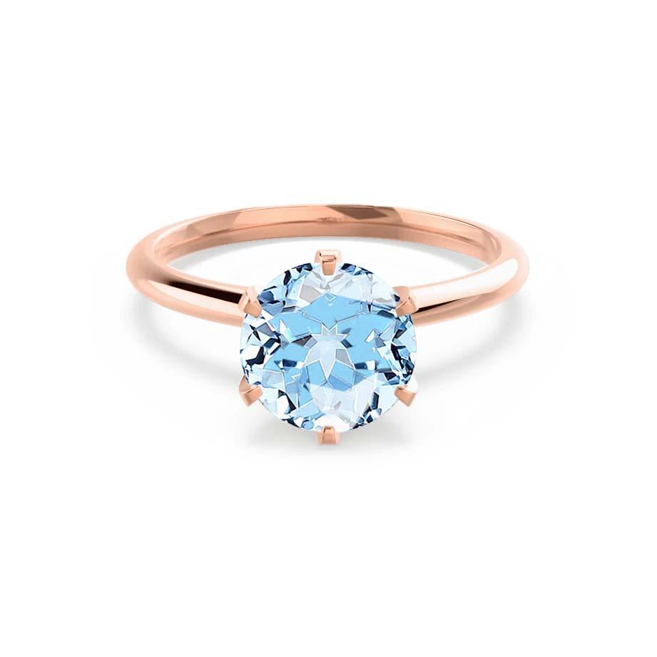 BLUEBELL – Aqua Spinel Knife-Edge 6-Prong Solitaire Ring in 18k Rose Gold