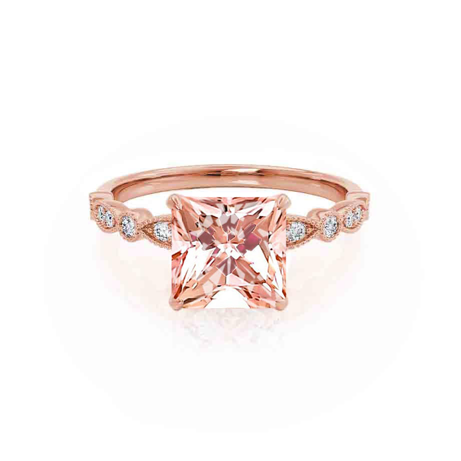 IRIS – Princess-Cut Champagne Lab Sapphire & Diamond Vintage Shoulder Set Ring in 18k Rose Gold