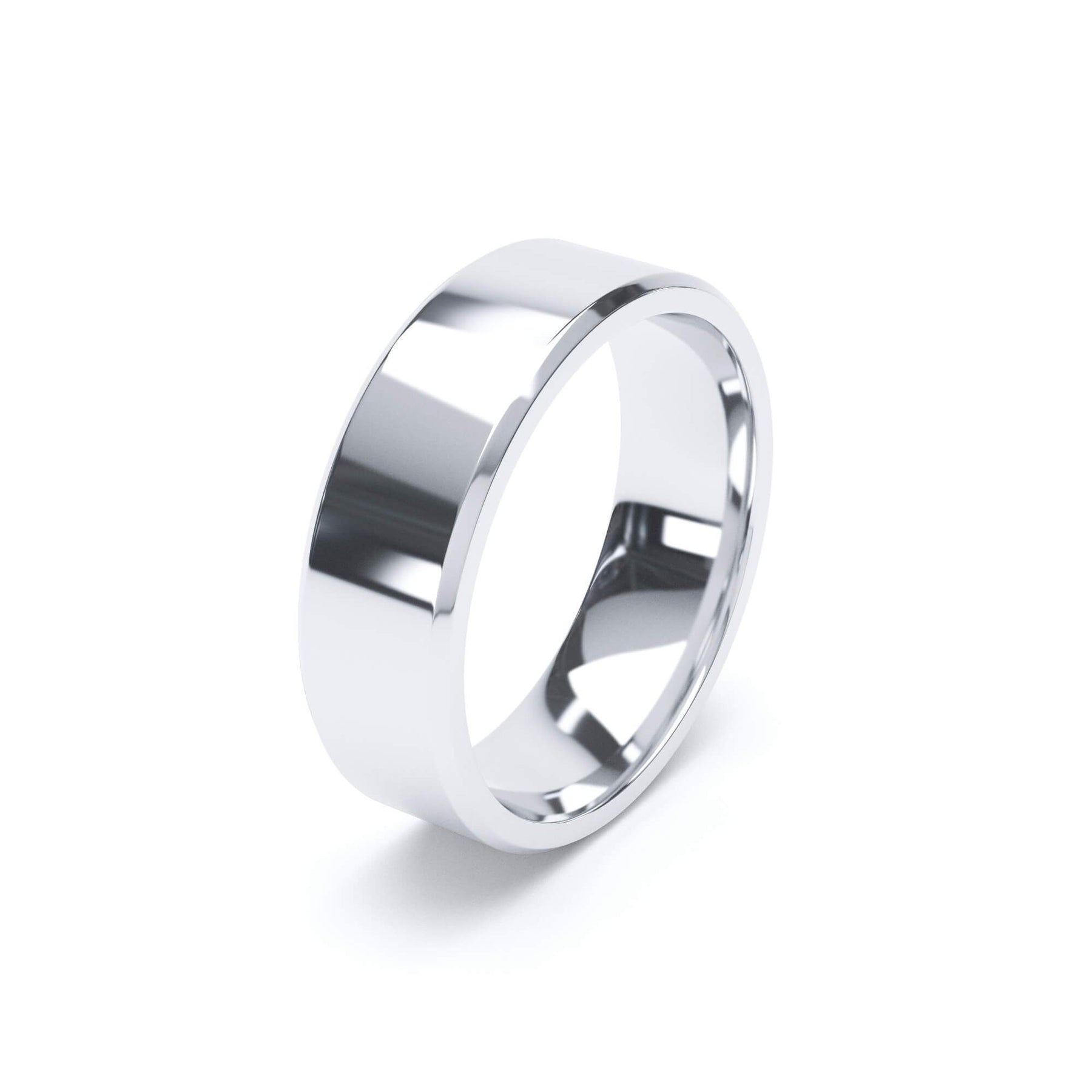 Bold and timeless, the ORION Wedding Band is crafted in 18k White Gold with a sleek beveled edge — a modern refinement of the classic flat profile. Designed with clean lines and perfect proportions, this band balances strength and elegance, making it a versatile choice for everyday wear or as a lifelong wedding ring.